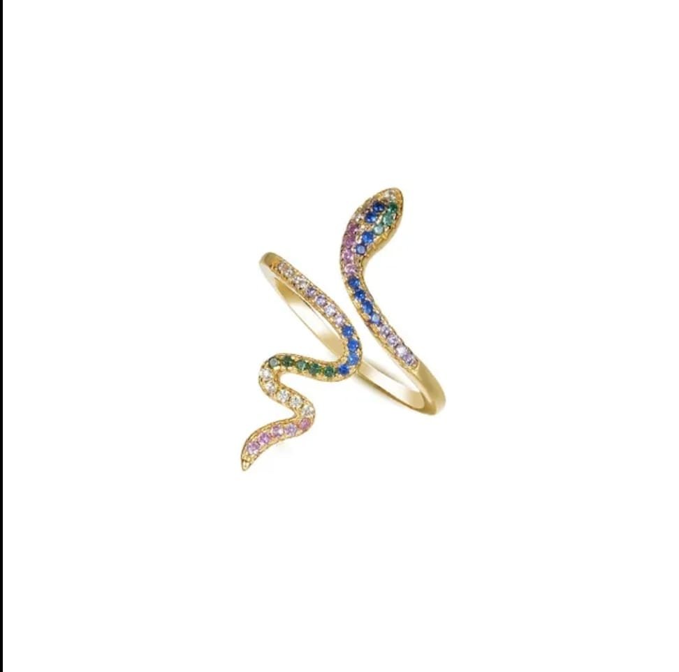 Anillo de plata (baño oro) forma de culebra -Ajustable